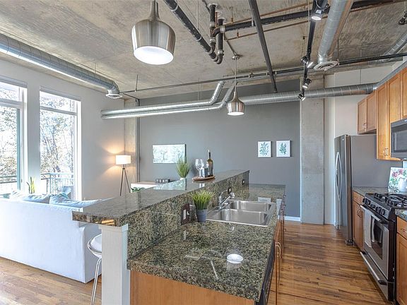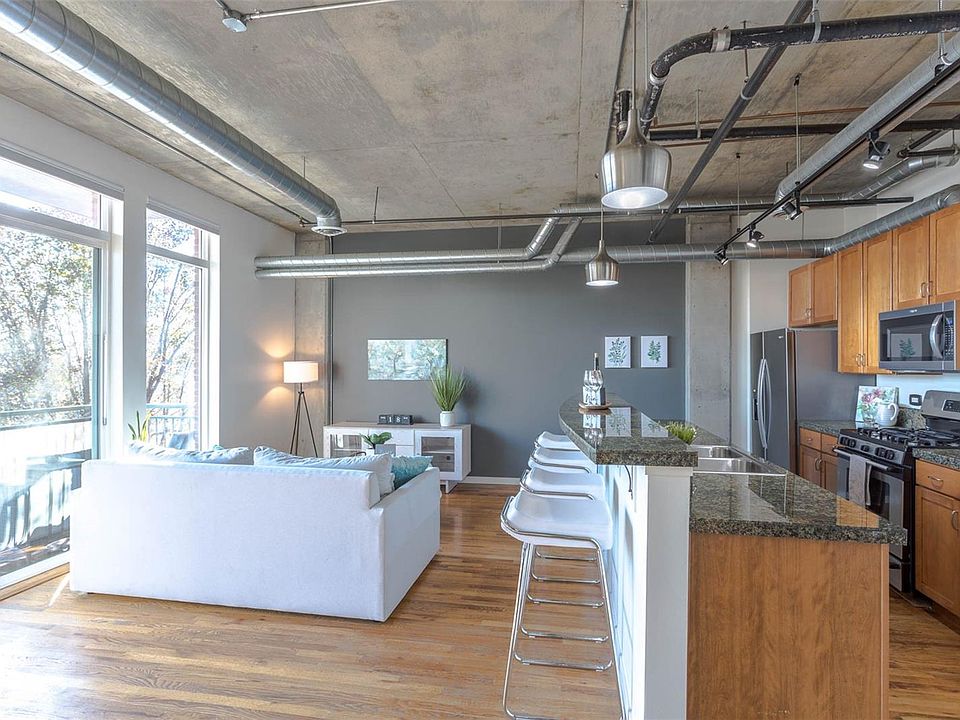 Enjoy the pulse of the city from this stunning loft located in the heart of LoHi! This sophisticated 1 bed/2 bath features views of the downtown skyline with floor to ceiling windows and a private balcony. Inside, an open floor plan features exposed concrete ceilings and beams with high-end finishes. Picture yourself in this historic neighborhood with the modern luxuries of a large master suite with custom closet, hardwood floors throughout, granite countertops, maple cabinets and stainless steel appliances. Located in a secured building on one of the best corners in the neighborhood, includes a deeded parking space and storage unit. This is a one of a kind opportunity below $450K that offers a tight knit community feel with dozens of restaurants, bars, public transportation and more within walking distance. HOA includes cable, internet, trash, recycling, heat, and water. This is the only unit available in the Shoshone Lofts and won't last long!