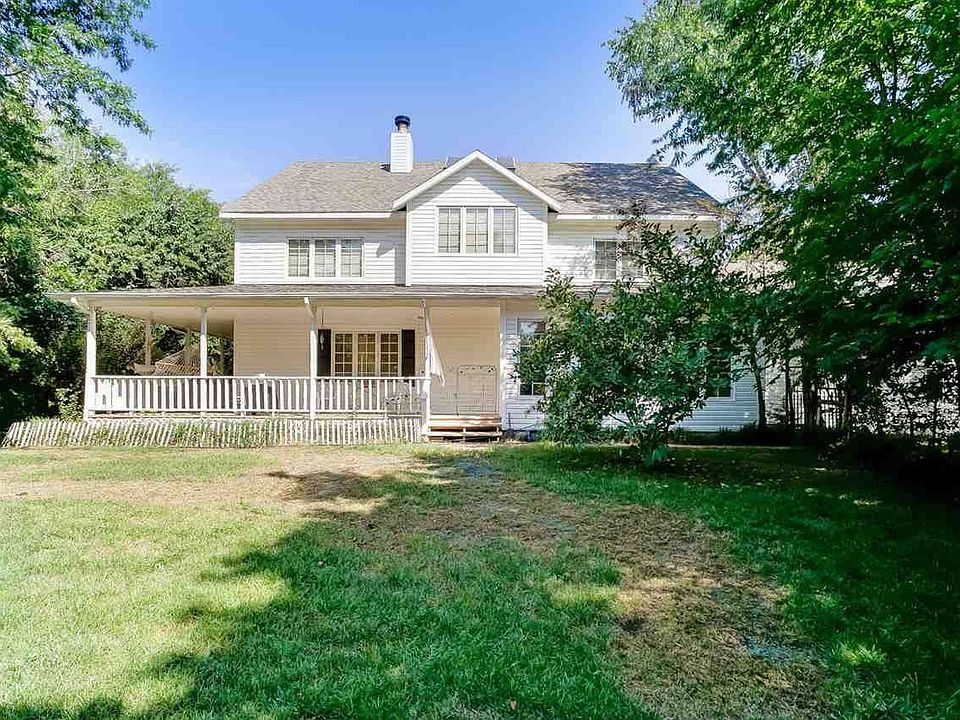 Welcome to beautiful country living in the city. This amazing home sits on 5 acres of unbelievable surroundings filled with wooded areas, creeks, pond, biking/walking trails and a beautiful acre of green turf. This wonderful sanctuary offers an abundant variety of wildlife for the nature enthusiast, including deer, turkey and quail. Walk into the over 5000 sqft home and be wowed by the sky-high cathedral ceilings and beautiful natural light of the living room space. Enjoy entertaining family and guests in the large dining area just off the kitchen which boasts newly installed granite counter tops and hardwood floors. From the dining area, walk through the French doors into the charming garden/sun room with its wall of south facing large windows. Off the kitchen and to the garage is the convenience of a half bath, super large mud room/utility area. The master bedroom sits on the main level, shares a large pass-through fireplace with living room and has its cozy private outdoor sitting porch. Upper level provides 3 bedrooms and two full baths. Two BRs have private balconies, the other is a very large sound-proof, loft-style space with private entrance. Head downstairs to the lower level and walk into tons more living space including a 5th bedroom, large rec room, bar room, play room, half bath and too many storage areas to mention! This property has much to offer, including a 3-car attached garage and 2-car detached garage to use as you wish while enjoying the free-standing wood stove and work bench. There is a large parking area allowing room for RV's, boats or trailers. Every country home should have a wrap-around porch and this one certainly does, along with a large wood deck perfect for entertaining. Other, but not all, features include insulated vinyl siding for energy efficiency, Florida Geo-Thermal heat pump unit for energy efficient heating and cooling, ADT alarm system with motion sensor, fire and carbon monoxide detection, fresh water well for unlimited outdoor watering which is portable. Exterior and interior have been freshly painted. The City of Derby is continuously growing and this home has the benefit of sitting within walking distance of Derby's newest state-of-the-art elementary school. Come see what country living could be for you. Acreage like this, so conveniently located, is hard to find for purchase and won't last long!!