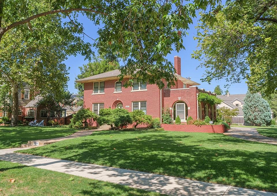 The stuff historic home dreams are made of in Linwood Place. Built in 1928, this home has had just two owners. Will you be its lucky third? Behold! All the charm a purist yearns for but rarely finds: original hardwoods, unspoiled wood trim, original tile, built-ins, gorgeous hardware and fixtures. Do you believe a home can give off good vibes? You’re sure to feel them here, because it's filled with nearly a century of love. Starting from the curb you know it's special. The home is classic redbrick, poised gracefully on a large, green, leafy corner lot. Lush lawn and mature trees. Through the arched doorway there's a proper entryway. To the right is the living room with gas fireplace and pretty natural light. The sun porch is off of that with lovely arched windows. It's the perfect second living area or plant room. To the left of the entry is the formal dining, then breakfast nook with original built-in hutch. The kitchen is laid out nicely; you needn’t move a thing. With frosted glass and glass knobs, the cabinetry is original and darling, beautiful just as it is, or you can shine it up with a fresh coat of paint. Perhaps you will want to add your touch with new classic countertops and updated appliances, but nothing more than that. Up the stairs (with their exquisite runner), you'll find a substantial landing that can house a desk or sitting area. The primary suite is large with an attached, spacious closet and access to the balcony. Two more beds plus a study upstairs. Then there are the two full bathrooms upstairs. If you love original tile, you are going to be in heaven. It's a gift to the home that this tile has been there since 1928; it's in excellent condition. There's a utility basement, outdoor patio, nice yard area. As if this property were not rare enough, there is a circular drive with a solid, three car garage. In a quiet part of Linwood, just around from the park it's in an ideal location. Truly a treasure, seize the chance to make it yours.