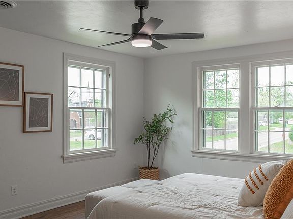 Experience the vibrant downtown lifestyle in this completely updated 3-bedroom (plus study), 2.1-bathroom charmer, perfectly situated right off 23rd Street and close to all that Oklahoma City has to offer. Step inside to discover stunning stained wood flooring in the main living areas bathed in natural light streaming through large windows in every room. The inviting living room flows into a magazine-worthy study featuring a mock fireplace with built-ins perfect for displaying your favorite decor, while the dining area showcases a striking light fixture and elegant wainscotting. Enjoy a cozy breakfast nook with corner built-ins off the beautifully updated kitchen, boasting quartz countertops and a stylish green subway tile backsplash. Upstairs, find a primary oasis with a walk-in shower featuring the same gorgeous green tile, a double vanity with updated finishes, and hallway built-ins, while the additional bedrooms share a tastefully updated full bathroom. Outside, a fully fenced backyard with a huge concrete patio and storage building awaits – this downtown gem is a must-see! Schedule your showing today and embrace urban living.