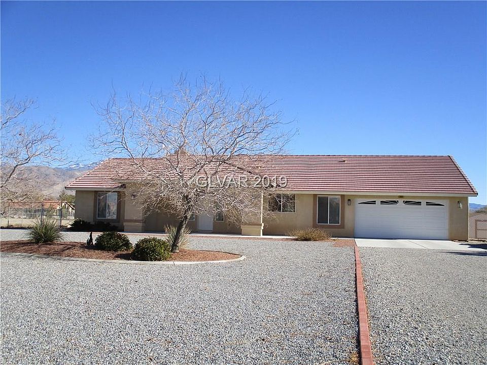Feels Like Home! Located on over an acre with spectacular views of Mt Charleston, this beautiful custom 3 bd/2ba home offers every comfort. Master suite with patio access, master bath with double sinks, garden tub and walk-in closet. Bright kitchen with oversized granite dining counter. Family room with stunning fireplace for those cool evenings. Backyard fully fenced with RV gates. 2 car attached garage with work bench and built in storage.