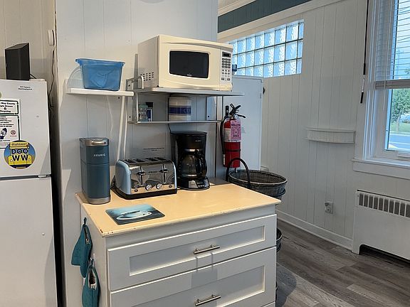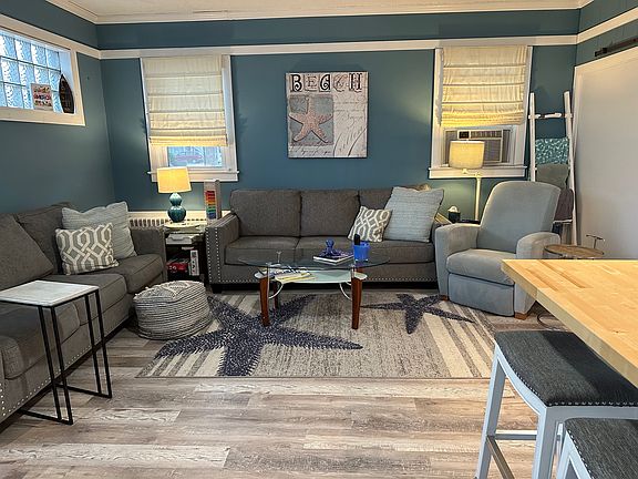 Winter rental ONLY Oct.1st to May st. This is NOT a yearly rental. Rate is $1285 plus $100 utilities fee. Free Wifi and Smart TV's for streaming. This is a 2 person's Winter Rental. **Please do not complete a Zillow application until you have seen the condo. Adorable 2 bedroom with open-concept Living room & kitchen featuring a queen sleeper sofa, center island & kitchen table. Efficiency Kitchen. New flooring and new front windows. Cozy coastal colors and inviting decor throughout. Centrally located on East Pine Ave., Only 3 blocks from Wildwood Famous Boardwalk and Beach. 7 min walk to the beach. he well-appointed kitchen includes a microwave, coffee maker, stove, refrigerator, dishes, cutlery, mugs, and glasses. New flooring and tastefully decorated throughout. The custom Barn door leads to the large pass through bedroom which is connected to the main bedroom. *Pass through- Bedroom includes Bunk Bed(twin top, twin bottom) plus full bed *Main bedroom has a Queen bed w/18' ceilings and brick accent wall. (You must walk through one bedroom to access the bathroom and living room. *One bathroom and private shower room. Parking for one car under the carport. There is plenty of off-street parking too! Bonus, our street does NOT have meters. Outside fiberglass deck with adorable patio seating. Outside shower with hot and cold water. (shared with the top condo) We are conveniently located on the East side in Heart of Wildwood. Great locations, only 3 blocks to the boardwalk and beach. **Our condo was formerly a store that still has the storefront area which is not included with the rental. This area is for the owner's belongings and is sectioned off from the living area. Winter Rental ONLY! Oct 1st to May 1st Owner pays $100 for all utilities. Two person rental. Rental applications are required which include. Credit, Criminal, and eviction checks. The renter is responsible for the fee and will not guarantee rental. NO SMOKING, IN UNIT . NO SMOKING in ANY AREA OF THE PROPERTY 1st months plus security due to start rental. Free Wifi Roku Streaming service available on the tv's. Small dog considered with pet fee.