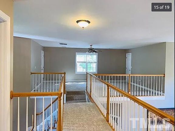 Spacious .96 acre lot. Convenient to I-540/98 and RTP.Beautiful hardwoods throughout the first floor. New granite ctrtop & backsplash in kitchen.All SS appliances, with gas stove. Gas logs in living room and remote control blinds that showcase the fenced-in backyard through 2nd story windows. Master bath fully remodeled. New carpet throughout second floor. Great house for entertaining.Huge finished bonus room which could be an office or workout room. Extra large walk out deck. Owner maintains lawn. Tenant pays for all utilities. $110 application fee. Small subdivisions with hardly any local traffic. One year lease, but negotiable. Tenant pays for all utilities-- well and septic are included in the property, so no water or sewage costs to tenant. Water heater is 6 months old...NO SMOKING inside the property.