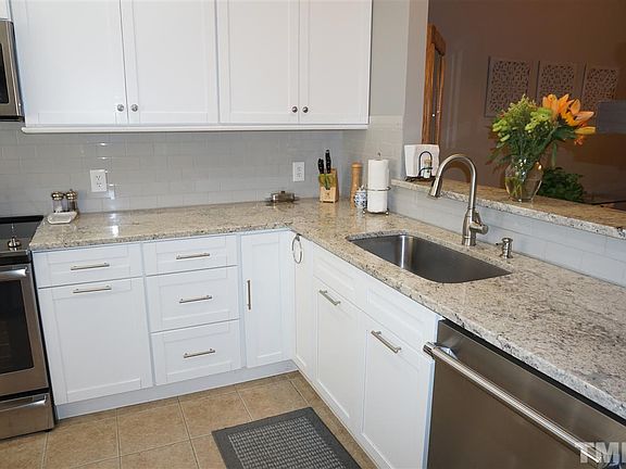 Beautiful end unit townhome! Immaculate and move in condition. Mostly brick exterior. Excellent N Raleigh location. First floor master bedroom with 2 bedrooms and loft upstairs. Updated kitchen with granite countertops, tile back splash, cabinets with easy close drawers, SS appliances, under cabinet lighting and tile flooring. Custom laminate flooring in dining, living and master bedroom. All baths have been updated w new vanities and tile floors. Brand new HVAC. Newer roof. Great deck and fenced yard.
