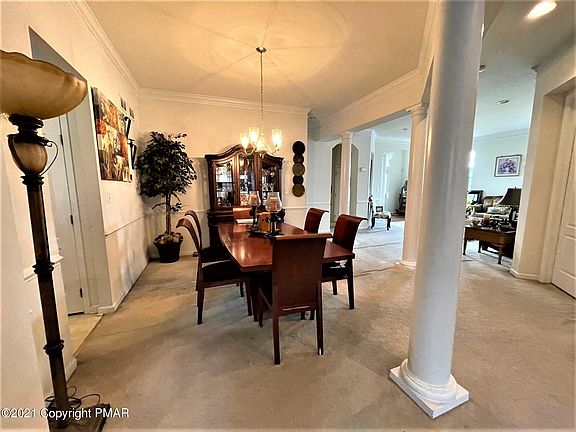 Gorgeous well appointed 3 bedroom and 3 full bathroom ranch located in desirable Country Club of the Poconos. This expansive home presents an open floor plan with high ceilings, crown mouldings, columns and chair rails. The large family room boasts stone FP and wall of windows allowing for natural sunlight. The custom kitchen offers the best in design with plenty of counter space and cabinets - perfect for entertaining with family & friends. The MBS is a dream! Tray ceiling, large private bath with soaking tub, 2 vanities and a WIC. Bedroom 2 also has a private bath & WIC. Other features include covered patio, 2 car garage, full basement and lovely mountain views. This community offers the finest private amenities with access to golf course. Excellent location close to PA/NJ border.