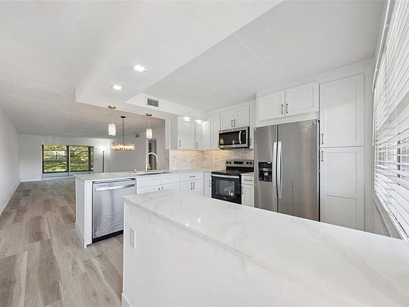 Stunning unit in Wynmoor! Overlooking scenic golf course, this spacious 2/2 has it all... renovated and redesigned from floor to ceiling. with proper permitting and code approved workmanship! Outstanding features include remodeled, open kitched w/ "New Storm Gold" Quartz countertops, solid wood cabinets w under-cabinet LED lighting; marble backsplsh & all new stainless steel appliances; luxury, high-grade vinyl plank flooring throughout; gorgeously renovated bathrooms, including redesiigned master w expanded shower and stone-floor finish; all new plumbing, fixtures & vanities; brand new A/C & water heater, all new electrical panel and wiring; upgraded light fixtures & more! Enjoy the amenties & lifestyle of Wynmoor, and peace of mind of fully renovated unit w 40-year inspection complete!
