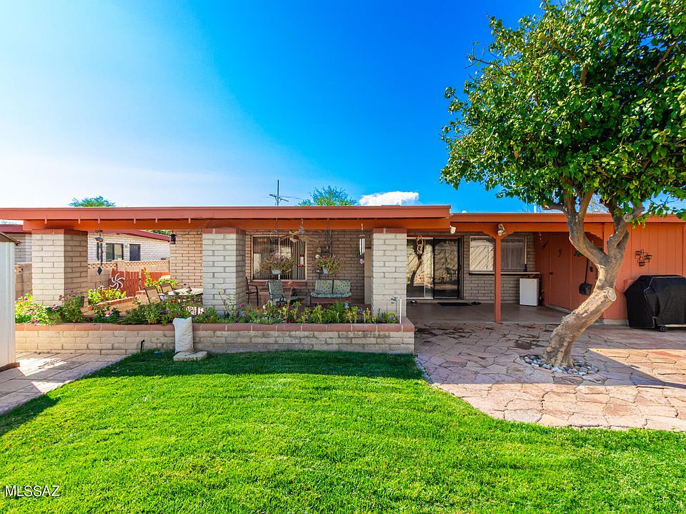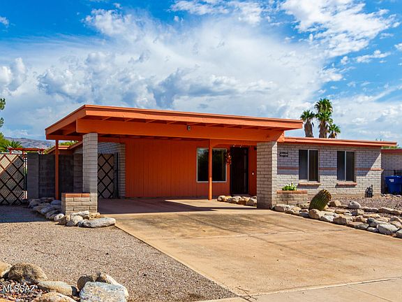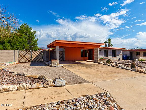 Amazing opportunity to own and live in Hearthstone Hills. Super clean, well maintained East Tucson slump block home on large lot. Lovely yard with mature trees, to include pink grapefruit tree, and flower beds. Double gate and room for an RV!! Close to shopping, schools, bus lines. 2 covered parking spots and a double gate on North side of yard. Vanities/Cabinets in 3rd bedroom are available for sale by separate bill of sale.HVAC put in in 2020, water heater replaced in 2021, water softener installed in 2019. Roof re-coated in 2023. DEEP FREEZER and MINI FRIDGE on back patio DO NOT CONVEY.