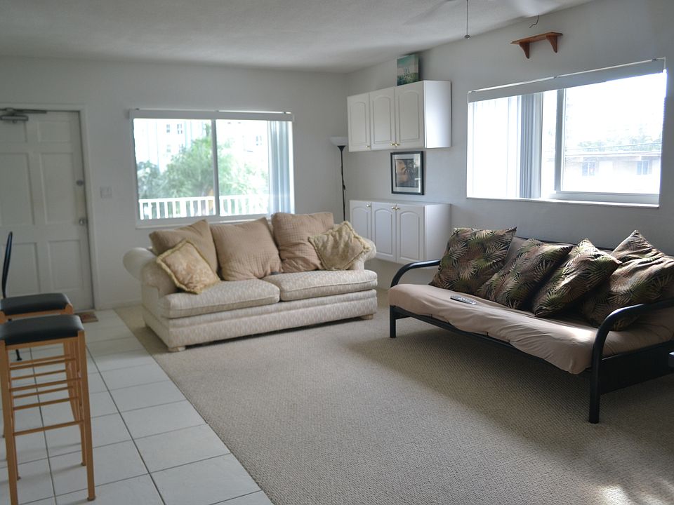 No Age restriction, one block to the beach. All furniture included. A true beach apartment ready to use. And if you want to rent the unit partially can do that as well..Heated pool and barbecue area in the complex.