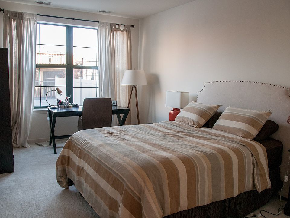2BR/2BA Luxury condo at Village Lofts *Over 1400 sq ft + spacious 1200 sq ft balcony* Elevator building w/ 2 garage parking spaces optionally available $90 xtra* Great floor plan for roommates - bedrooms on either side of kit/great room. Kitchen w/ granite/stainless * Storage* Washer/dryer in unit. * Walk to JHU / Union Memorial*JHH shuttle across the street. Can rent Furnished* Parking $100 mo.