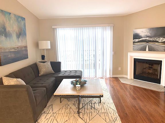 Top floor, end unit 1 bed 1 bath with ocean and mountain views. Features resort style pool, jacuzzi, fitness center, and newly renovated club house. Well landscaped and maintained by HOA. Plenty of parking. Unit features walk-in closet, in unit laundry, stainless steel appliances, gas fireplace, dishwasher, AC with NEST. Dining room ceiling fan, vaulted ceiling, and balcony with storage. 1 car garage and 1 additional assigned parking space included. Close to Bressi Ranch, shopping, beaches, restaurants, parks, and hiking trails. No smoking. 1 year term. Water, trash, and HOA are all paid by owner. 1 cat allowed with pet fee of $200.