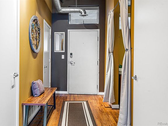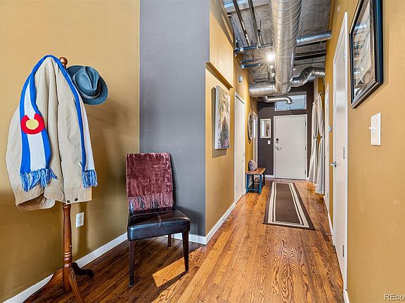 Incredible pied-à-terre perfectly situated in the heart of LoHi. This turn-key condo sits high on the bustling street of Shoshone, boasting sweeping views of downtown from your private terrace. Behind a gated entrance, your urban enclave features soaring ceilings and industrial loft features in balance with saturated designer colors and gallery walls for your curated display. The open layout offers space to host a crowd for dinners, a large living area, a nook for a home office, and an enormous kitchen island for preparing gourmet meals and gathering with family and friends. The bedroom is spacious, and the many closets are extra deep and generous with room for all your gear. Plus, there’s a storage unit in the covered garage for any overflow. Well-appointed baths include quality finishes, and all this turn-key home needs upon move-in are your personal touches. Located just a stone's throw from the vibrance of LoHi, including top eateries, nightlife and boutique shopping, it still feels like a quiet neighborhood street, perfect for taking your dog out for a sniff or simply enjoying morning coffee on your balcony. Close proximity to all the Denver sports venues for the sports enthusiast! The icing on the cake is a secure, heated parking garage with deeded space. Whether you’re looking for a cozy downtown respite, a second home, or a perfectly sized place to live your urban lifestyle dreams, this condo has all you could want and more. Welcome home to this urban oasis in the city!