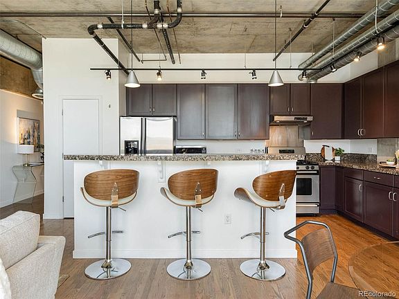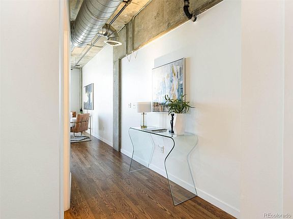 This popular Shoshone Lofts 2 bedroom, 2 bath floor plan in the heart of LoHi offers easy access to great restaurants just steps away. Minutes from downtown Denver and the Union Station light rail hub via the 16th Street pedestrian bridge. Open floor plan, hardwoods throughout, newer dishwasher, washer, dryer, AC, and freshly painted decor. High ceilings with two fans and concrete exterior walls offer a great contemporary industrial loft vibe. Patio is perfect for grills and cozy seating. Second bedroom is great for an office or bedroom set up. Two reserved parking spaces, one in garage and one on surface lot at rear of building. Reserved storage space in garage. Building has elevator. Access unit from security-gated exterior walkways....no interior hallway to your front door. 2nd bedroom is non-conforming or as currently used as an office.