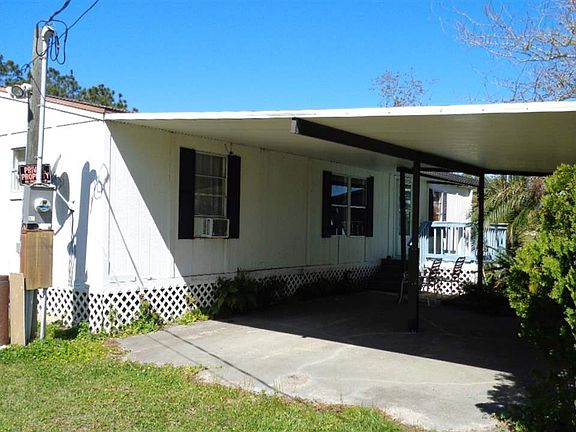 Enjoy country living very close to I-95, shopping malls, good restaurants, etc. NO HOA fees. NO CDD fees. Live country life as you like it.Home has recently been painted inside & out.Home has 4 A/C window unit but is vented for central H/A.Extra 16x11 room addition on back could be 4th bedroom It is being used as family room. Front yard is shaded by huge beautiful oak tree. Backyard is fenced. 2 car attached carport. Lots of room for your toys on this one acre piece of land. Bring offers.
