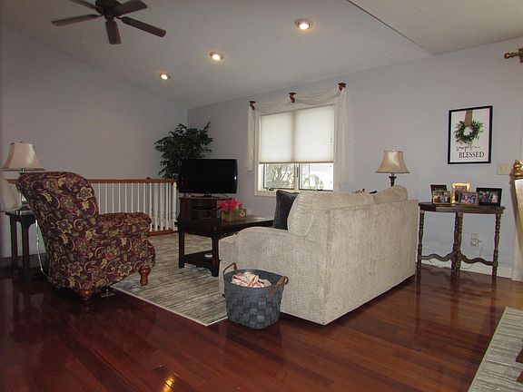 Immaculate and beautifully maintained ranch home with full finished basement with oversized 2-car end load garage, 40x60 pole building on a scenic 2.5 acre country setting. The daylight basement has a large family room, rec room and 2 additional spacious rooms. The main floor has 2 bedrooms, huge living room with vaulted ceiling, dining room and an efficient kitchen, plus 2 1/2 baths and a large laundry room. The 2 rear decks provide a tranquil experience overlooking the open back setting. The beautiful mesquite hardwood floors are the perfect accent to the open feel of the home. Propane budget is $60.00 per month. Seller many need 60 days after closing for possession on the pole barn.