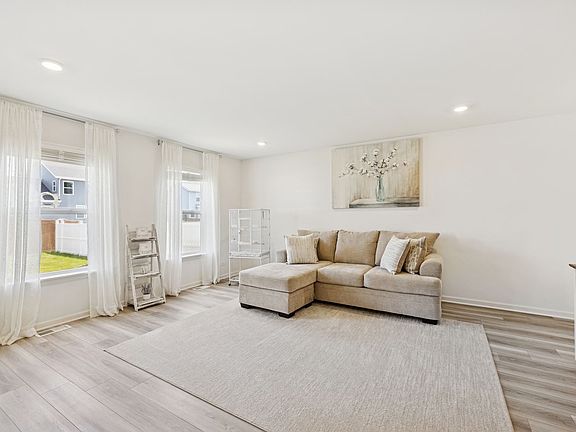 Step inside this impeccably maintained home and discover a world of modern elegance, where every detail has been thoughtfully curated to suit today's lifestyle. Just three years old, this better-than-new residence offers a bright and open layout enhanced by fresh, modern tones and designer touches throughout. Recessed lighting casts a warm glow across the main level, while soaring 9-foot ceilings add to the home's airy and expansive feel. At the heart of the home, the gourmet kitchen is a true showpiece-featuring 42" cabinetry, granite countertops, a striking tile backsplash, stainless steel appliances, and an oversized island with a breakfast bar ideal for casual meals or lively gatherings. A sunlit eating area showcases a stunning chandelier and panoramic backyard views through large windows. The adjacent family room invites relaxation and effortless entertaining, while a stylish half bath and convenient first-floor laundry room complete the main level. Upstairs, the serene primary suite is filled with natural light and offers a beautiful private bathroom. Two additional bedrooms share a well-appointed second full bath. Downstairs, the fully finished basement expands your living space with a spacious recreation room, a full bathroom, and generous storage-offering more versatility than most new construction homes in the area. The professionally landscaped and fully fenced backyard, with lush green space creates the perfect backdrop for weekend barbecues, morning coffee, or watching the sunset in total tranquility. With a 10-year transferable structural warranty included, this home combines the peace of mind you get with new construction with the benefits of a home that's already been perfected. Located near endless shopping, dining, parks, golf and SO MUCH MORE! This is where your Happily Ever After begins!