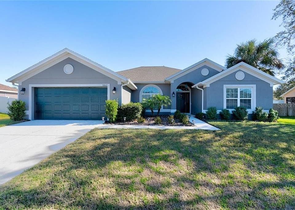 A unique floor plan from reputable Adams Homes, you'll appreciate the open floor plan and flow of this gorgeous home!This home is a MUST SEE! Shows like a model home, and is practically brand new! Built in 2017, it offers four large bedrooms PLUS a flex room! Fully fenced in, along with a separate dog run with a custom doggie door running right out into it! Wide open kitchen and great room, with a custom rustic accent wall is all you could ever wish for! Powered by solar energy, save all of that money for something fun! Sit on the spacious lanai and enjoy the weather or go shopping in this up and coming area! Enjoy big city conveniences without the price tag, high HOA fees or traffic while living somewhere you can have the small town feel! Only about five minutes to I-75!