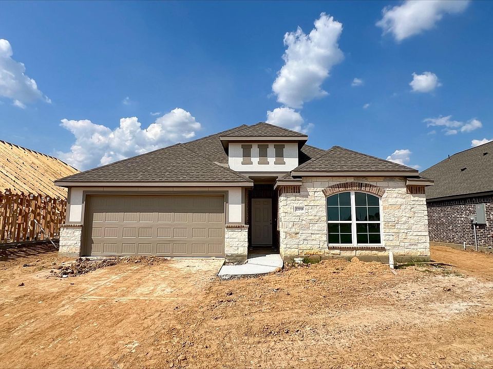Discover Oakwood Estates—a master-planned community nestled in the charming town of Waller, TX. This serene neighborhood offers a lake, neighborhood park & an amenity area, providing residents with a peaceful lifestyle. This BEAUTIFUL Driskill plan features 3 bedrooms, 2 full baths & a versatile flex space that can easily serve as a home office or hobby area. You’ll love the kitchen with its granite countertops, custom cabinetry & stainless-steel appliances, designed to make both everyday cooking & entertaining a breeze. The main living areas boast durable laminate flooring, with tile in all wet areas for easy maintenance. The luxurious primary suite will impress with a glass-enclosed shower, dual sinks & a spacious closet offering convenient access to the laundry room. Step outside to enjoy your backyard retreat, complete with a covered patio, full sod & a built-in sprinkler system to keep your lawn green year-round. Home is under construction and will be move-in ready November 2025!