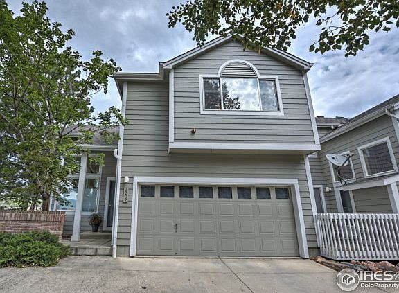 Fabulous flatiron views! Cheerful and bright updated townhouse in North Boulder. Wood floors, updated kitchen & bathrooms. 2 car attached garage.2 bedrooms ensuite w/loft, 3 bathrooms, & an unfinished basement for your expansion & imagination. Living room has gas fireplace & flatiron views. Walls & windows updated for soundproofing & energy efficiency. Low HOA fees.Finish the basement to add a third bedroom, bathroom and family room.