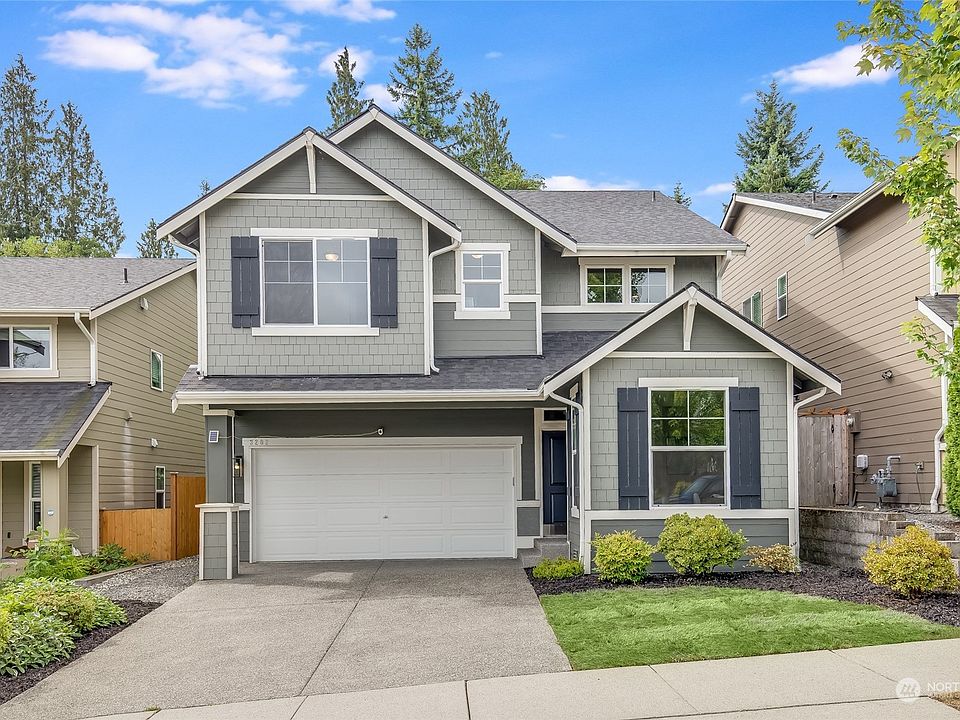Don't miss this better than new Ridgecrest Park home because it will not last long! The two story entryway reveals engineered hardwood floors, iron and wood railings, new carpeting & fresh paint throughout. Great room plan w/ huge kitchen featuring quartz countertops under cabinet lighting, walk-in pantry & huge island. Living room w/ gas fireplace & office/den on main floor. Primary suite w/ vaulted ceilings and 5 piece ensuite w/ dual vanity & spacious WIC. A quiet, cul-de-sac location, private back yard, gas forced air heat AND AC plus solar panel array to cover those electric bills! Upgradeable high-tech wiring in most rooms + additional electrical circuits in den & kitchen for all your gadgets! All appliances included & move-in ready!