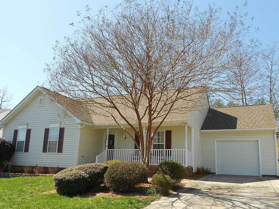 Very well maintained home. Vaulted ceiling in living area gives home an open feeling. Updated kitchen w/newer stove, microwave, lighting & granite counter top! Refrigerator stay's. Sliding doors in brkfast area lead to private back yard w/deck & patio, perfect for summer grilling. Mature landscaping will give you plenty of shade in the warmer months. MB also has vaulted ceiling with ceiling fan. Larger master bath with double sink, makeup area & lg walk in closet. Home Warranty. Conv't to GSO & J'town.