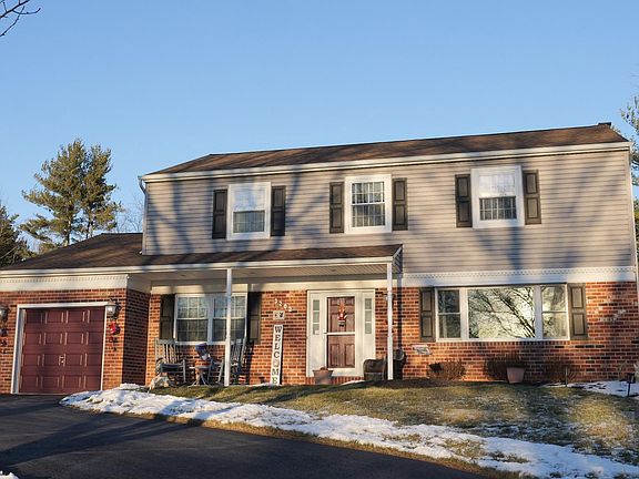 WELCOME HOME !! This Lovely 4 bedroom Colonial is bursting with Curb appeal and Classic Design. It is well maintained with many upgrades such as a newer roof & vinyl siding(3 years old), newer HVAC system(Lennox Heat-pump), a whole house generator and more. The Gracious Entry Foyer has chair-rail & crown Moulding, the Living Room is to the Right and the Formal Dining Room to the Left. The large Country Kitchen offers Newer Solid WoodCabinets, Corian countertops, modern appliances and a window over the kitchen sink. There is also a large Garden window in the kitchen which is perfect for growing your plants and cooking herbs (basil, thyme ,rosemary, etc). The Kitchen opens to the Wonderful large Family Room with a Beautiful Full-Wall River-Rock Stone Fireplace which is easy to turn on (propane tank outside). The heated sun-room/Florida room off of the Family room has vaulted ceilings & many possibilities for your summer entertaining. Access to the 1-car garage from the house offers great storage with cabinets and shelving and room for your car of course. There is attic storage above the garage ceiling ! The convenient First-Floor powder-room and laundry room have good storage too. The full, dry basement has high ceilings and poured concrete walls, good for storage, hobbies or a future man-cave. The second floor offers the Main-bedroom with its private bathroom with a walk-in shower and a large walk-in closet. There is a Hall bathroom and 3 other spacious bedrooms with large closets and sunny rooms. After a long day, you can sit on your cozy front porch and enjoy the Sunset Views and Mother Nature from your Beautiful New Home. Everything you need is here, a Quiet location on a cut-de-sac street with no traffic. You are close to shopping and easy access to all major traveling routes for your commute to work. There is an invisible underground dog fence on the property. The Shed on left side of the yard offers storage for garden tools and the lawn-mower. Washer, dryer, refrigerator, ceiling fans & generator stay.