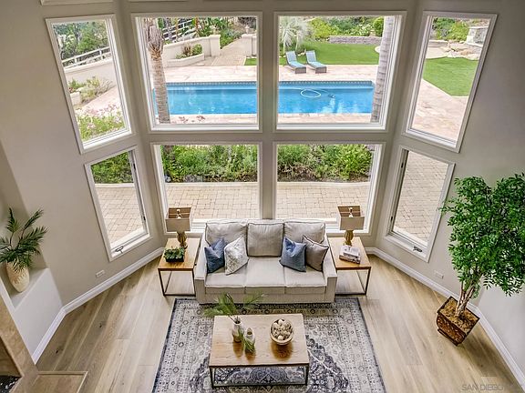 Prepare to be dazzled! Rarely available in one of Olivenhain’s most coveted pockets in equestrian country, this impressive estate property is sure to satisfy your hopes and dreams. Situated on a picturesque 2-acre lot with maximum privacy, this home features 4 bedrooms + bonus room, with the huge primary suite upstairs separated from 3 more bedrooms up - and a full bed with en suite bath down. The well-designed floor plan allows the spacious kitchen to open directly to the expansive family area – the perfect setting for all your special gatherings. The bonus room downstairs can be utilized as another BR, den, or office. Enjoy postcard-pretty views of the pool through the massive picture window from the formal living room which features new luxury plank flooring. Outside, meander past the built-in BBQ, firepit, pool, and spa to your very own beach volleyball court. The lush landscaping is sure to remind you of your favorite tropical getaway. Just minutes from Encinitas highly rated Olivenhain Pioneer Elementary and Diegueno Middle schools - and the ability to have your teens choose which of 4 award-winning high schools to attend. Gated entry, four-car garage, fully paid solar for the house, tank and tankless water heating, and a separate solar system for the pool are just a few of the extra amenities on this property that one lucky family will soon call HOME!