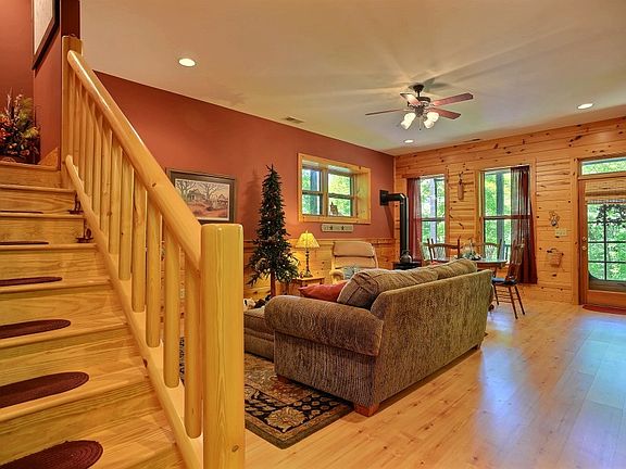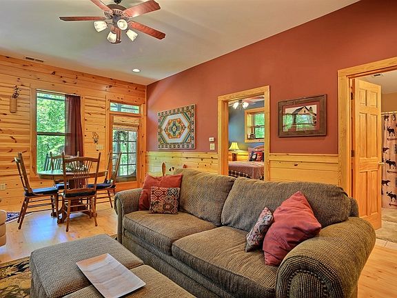 Mountain Views & More! This FURNISHED private mountain view cabin sanctuary in Fodder Creek Phase III community is a greatget-away. Cabin is superbly positioned on a hillside on a 1.45 wooded acre lot with views of Brasstown Bald. Entertain on yourwrap-around deck on the main or outdoor area with fire-pit. Fenced-in yard in the back is perfect for your pooch! Light-filled greatroom w/ large windows & vaulted ceilings flows out to the deck. Incredible hickory wood floors throughout the home! Nice sizekitchen w/ island bar is just perfect. Mstr. BR on main has entrance to deck where you can retreat at the end of a day. Terrace levelw/ expansive great room, BR, BA & entrance to lower level deck would be the perfect game or movie room. Spacious carport is aplus! If you're dreaming about entertaining Georgia Mountain style...this cabin is for you!