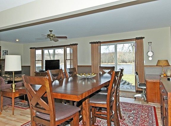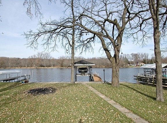 Your waterfront paradise awaits! Beautiful ranch home with gorgeous water view, house faces woods across the river. Roomy kitchen with stainless appl., large living/dining with a cozy fireplace. Xtra deep 2 car garage. 2 sheds. Large deck. Covered Boat dock! Firepit in yard. Tasteful decor with one bath remodeled.