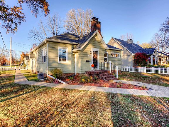 Nestled in the heart of the Midtown neighborhood, this beautifully updated home offers both character and modern comforts, while located within eye sight of Vann Park, blocks from the State Hospital Park and a short bike ride to Wesselman's Park. Situated on a desirable corner lot with a fully secured white vinyl picket fence, the property boasts incredible curb appeal with a brick front porch, mature trees, and stunning views along East Powell Avenue. Step inside to discover sparkling original hardwood floors, arched doorways, and an abundance of natural light that flows throughout. The living room is highlighted by a wood burning fireplace and offers wafer canned lighting and an upgraded ceiling fan, creating a bright, welcoming space. Adjacent to the living room, you’ll find the ideal office, toy room, or what could even be a fourth bedroom. The updated eat-in kitchen is a true standout, featuring sleek gray cabinetry, quartz countertops, a butcher block island, corner built-ins, and stainless steel appliances. The perfect space for family gatherings or entertaining guests, this kitchen is sure to impress. The true owner's suite offers a custom-tiled shower/tub combo and a surprisingly spacious walk-in closet. Two additional bedrooms are generously sized, complete with original hardwood floors and updated light fixtures. The second full bath showcases charming 1940s tile floors and shower surround, along with a modern quartz-topped vanity. The unfinished basement provides excellent storage, houses your laundry area (washer & dryer included), and features an upgraded HVAC system. This expansive space is ready for transformation into additional living or workout areas, adding even more potential to this already functional home. Outside, the detached two-car garage provides plenty of storage space for both vehicles, while the back deck offers a peaceful retreat to enjoy the natural surroundings of the yard. Additional improvements include fresh paint, upgraded electrical service, gutters/downspouts, window treatments throughout & more. With parks, shopping, groceries, and coffee shops within walking distance, this home offers unmatched walkability, convenience and a prime location in the center of Evansville. Don’t miss the chance to make this charming Midtown property your own!