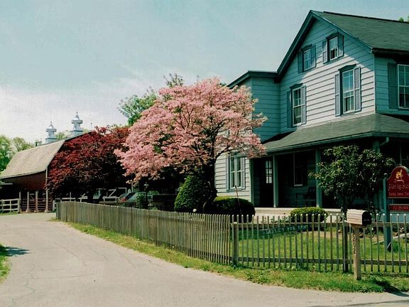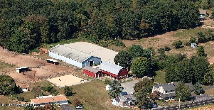 Golden Key Farm perfect for private facility for your own horses or use as a turn-key horse farm w/ already established lesson & boarding business. 21 box stalls, 60x120 indoor arena w/ dust free Lightfoot footing (sand/rubber/fabric mixture), 2 outdoor rings (one is lit & measures 90 x 201). Fully fenced perimeter w/ 6 fenced pastures have run-in sheds, water & H20 heaters & light. A convenient outdoor wash rack, 2 tack rms & large hay loft. The 3724 sq ft. elegant renovated farmhouse is a beautiful showpiece w/ each room having been thoughtfully designed. European style kitchen, 3-season enclosed porch, brick fireplace in the stylish living room. Large finished bsmt has a fireplace & wet bar - ideal spot for parties. 7 delightful bedrooms & 4 full bathrooms create a real B&B feel.