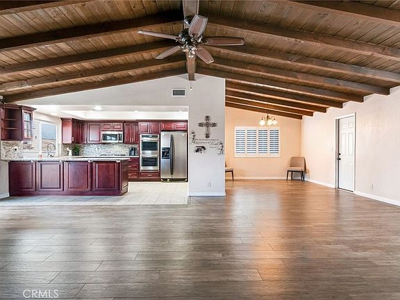 Welcome to this beautifully upgraded single-story, 4-bedroom home nestled on a cul-de-sac in Norco. Set on over half an acre, this property blends modern comfort with country living. Step inside to an open floor plan featuring recessed lighting, striking beamed ceilings, and custom flooring throughout. The home boasts newer windows with plantation shutters, creating light and inviting atmosphere. The upgraded kitchen is a chef's delight, complete with granite countertops, stainless steel appliances, and a newer Café stovetop with double oven. Both bathrooms have dual sinks and custom granite counters, while the master bathroom has an upgraded walk-in shower. The exterior is equally impressive with new paint, newer gates, and fencing surrounding the property. The front yard is beautifully landscaped, while the backyard is a private oasis with a brand-new pool and spa, and covered patio. For those who love the equestrian and ranch lifestyle, the property is equipped with two box horse stalls with pipe turnout, a large chicken coop, barn for storage, and rolling fence access to the back of the property- perfect for trailers, toys, or RVs. Water runs conveniently to the coop and stalls, while solar motion lights add extra functionality. Additional features include a newer AC, heater, alarm system with cameras, genie pad, and a new filtration system in the garage. This exceptional property truly offers the best of both worlds - modern upgrades and ranch-style living in the heart of Norco!