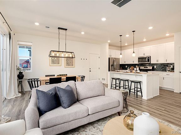 Welcome to The Villas in the Meadows, a pleasant and vibrant paired-home neighborhood, close to community pools, amazing parks, miles of trails, open space, hiking, incline and the charming Downtown Castle Rock. LOW maintenance living here - the HOA takes care of it for you (including mowing and snow removal)! This better-than-new, 2021 built home offers versatility and space to spread out with its open floorplan and den on the main floor. Upstairs, you’ll find 3 very spacious bedrooms PLUS a loft/bonus space! Modern amenities are offered throughout with its quartz counters, upgraded cabinets, appliances, designer backsplash, luxury vinyl plank floors, modern light fixtures, second-level laundry, and large closets. With almost zero maintenance, you can get your weekends back! Right outside your door is one of many pocket parks within this quaint neighborhood, or venture out a few minutes to visit the historic, yet lively, Downtown Castle Rock restaurants, breweries, and boutique shops! The holidays in Castle Rock make it feel like a small town with its annual Star-Lighting Ceremony with live music, carolers, fireworks, and horse carriage rides! Summer events include Concerts in the Park, Farmer’s Markets, Yoga in the Park, Parade, Cattle Drive and the Douglas County Fair + Rodeo you won't want to miss! Only 15 minutes to DTC, 30 minutes to Downtown Denver! Come live the good life!