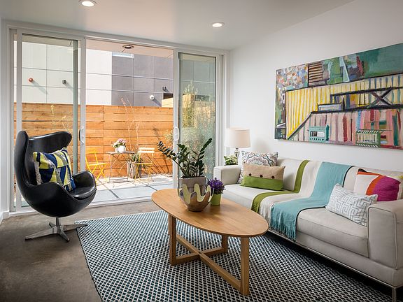 Completely contemporary, with a hint if Mid-Century design, this newly built 3 bedroom 3 bath home is fresh, modern and bright! Large entry with mud room, bedroom suite, interior access to garage on lower level. Main level open concept living with lux kitchen, stainless appliances and decorator tile, office integration with walnut accents, large living room with Juliette balcony. Top level master suite with walnut accents, walk-in closet and 3rd bedroom and bath. Garden play area.
