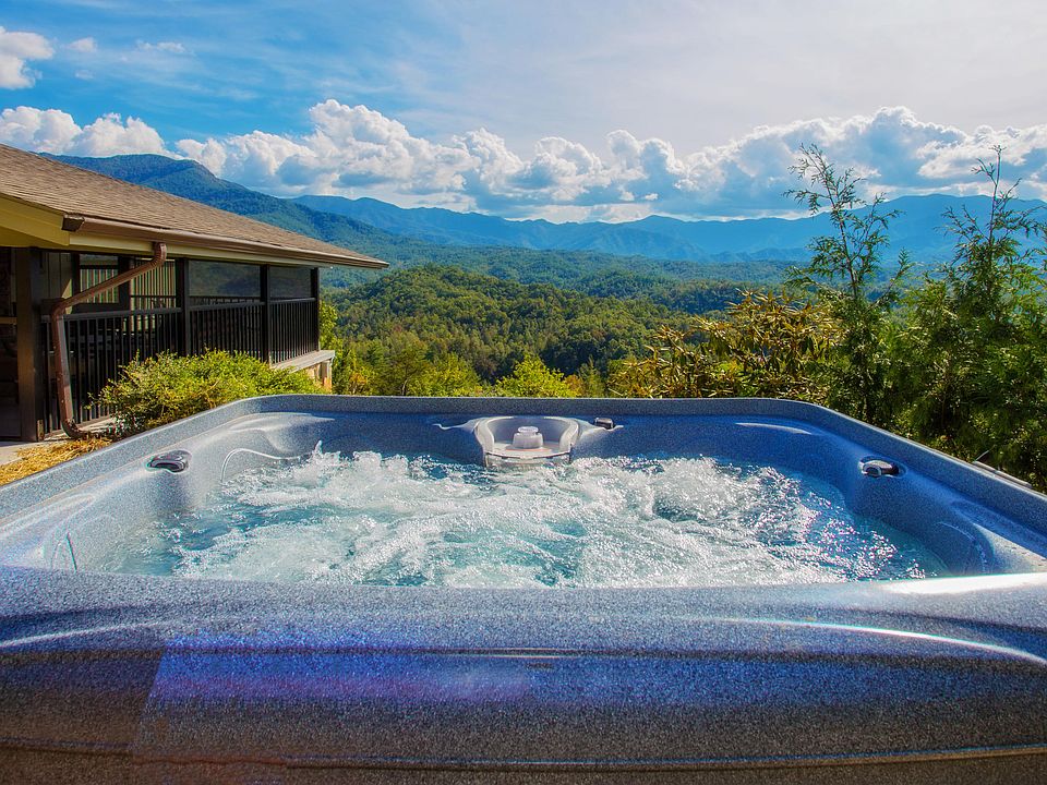 ''LeConte Mountain Breeze'' is an architectural masterpiece, floating into the clouds with VIEWS, VIEWS, and more VIEWS of LeConte Mountain and is located in beautiful Gatlinburg/Pitman center area. The road going to the cabin is completely paved and has parking for 3 vehicles comfortably. The cabin would be considered motorcycle and trailer friendly only at the rider's discretion.A beautifully decorated Chalet with 3-bedrooms and 3 full custom bathrooms. A great Living room with cathedral ceilings, wide plank flooring throughout, massive mountain stone electric fireplace with glass walls facing LeConte Mountain with unobstructed mountain views. Enjoy the Large comfortable couch or leather recliner while watching your favorite show on the large Flat screen Tv. You may never want to leave the comforts of the chalet once you enter. All 3-bedrooms have custom built King size mattresses by Stearns and Foster from Ashley Homes Collection for ultimate comfort. Master bedroom 1 located on the lower level has a mountain stone electric fireplace and a large custom bathroom with a walk-in shower only, exit out the back door to a private porch to enjoy the amazing mountain views. The 2nd Master bedroom also located on the lower level has a large custom bathroom with a walk-in shower only. The laundry room is also located in this bedroom for your convenience. The 3rd bedroom located on the main level has a custom fabric wall Headboard with the bathroom being separate with a tub/shower combination. All the bedrooms will have LeConte Mountain views, just open the blinds in the morning to enjoy or unwind your evening watching you favorite show on the flat screen tvs in each bedroom. The kitchen has all stainless steel appliances with a 2 in one coffee pot and granite counter tops to make any favorite meal. Enjoy the Quaint dining room with a large round dining table for 6. If you enjoy grilling, there is a gas grill for your convenience, just bring your favorite food and enjoy. To access the great room just exit the living room back door follow the beautiful deck down two steps to a large screened in porch with a wood burning fireplace, a large flat screen TV and comfortable outdoor furnishings to enjoy the mountain views . After a long day step outside and soak in the brand new bubbly hot tub with LeConte Mountain Views as far as the eye can see. If you are wanting to have some of the best views the Great Smoky Mountains has to offer! Check out the amazing video under the photo's tab.