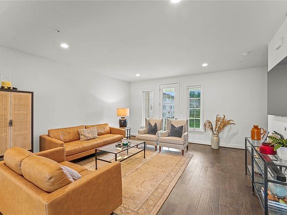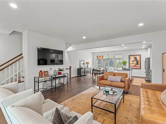 Welcome to the move in ready 3202 Lynk Aly located in Hastings of South Fayette. Enjoy low maintenance living in this open floor plan home with a main level that features an upgraded kitchen with large island, quartz countertops, stainless steel appliances including a gas stove, and tile backsplash. The dining area features room for a large table and has a view from the huge full view triple windows. The living room continues the open floor plan and has recessed lighting, it also provides access to the semi-private covered deck. Upstairs features a large owners suite with a walk in closet including custom organizers, and a full bathroom complete with double bowl sinks. Two additional bedrooms, a hallway full bathroom, laundry closet, and ample room for a reading or desk area. The lower level has an oversized 2 car garage for storage, spacious entry, additional storage, and a den perfect for a home office. Home also has a welcoming covered front porch.