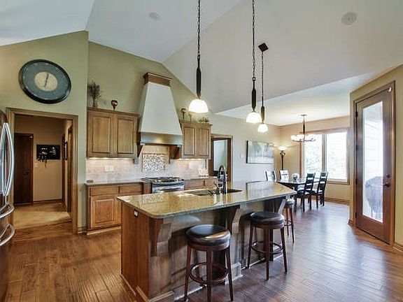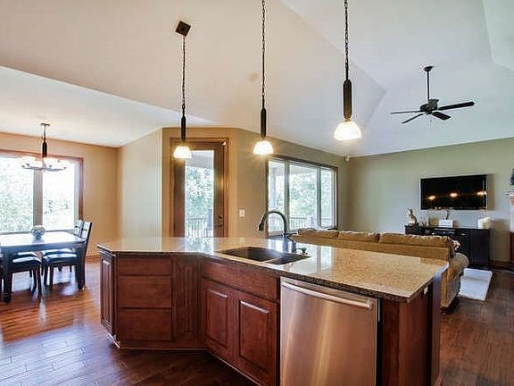 Welcome home. "The Riverton" built by Lifestyle Homes features a beautiful open floor plan with huge kitchen, unique split bedrooms, main floor laundry, separate main floor office, full finished walk-out basement with 2 nice bedrooms, full bath, rec. room with a stunning wet bar, fireplace with built ins, fully landscaped yard with sprinkler system on a well all of this on a lake lot.
