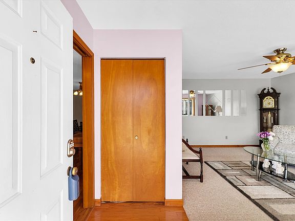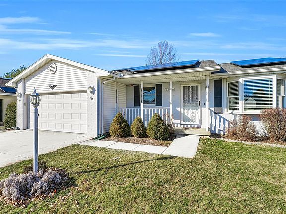 Seize the opportunity to make this remarkable 3-bedroom, 2-bathroom ranch home with solar panels your very own lakeside sanctuary. The current owners installed the solar panels, they are owned, paid for, and will transfer as personal property. Inside, you are greeted with a spacious living room flooded with natural light streaming through a large bay window, while a nearby dining area sets the stage for memorable meals shared with loved ones. Adjacent to the dining area, a cozy family room beckons with the warmth of a fireplace, providing a cozy retreat for gatherings or quiet evenings at home. Transition seamlessly into the three-season sunroom, where you can immerse yourself in the beauty of the outdoors while enjoying the comfort of indoor living. Outside, the fully fenced backyard offers privacy and serenity, featuring a deck and brick paver patio, perfect for outdoor entertaining or simply basking in the sunshine. A garden shed provides convenient storage for tools and outdoor equipment, while a 2-car attached garage offers ample space for parking and additional storage needs. New fence 2022 and porch rebuilt in 2021. Newer hot water heater. This is a very well cared for home and with its blend of sustainable features, comfortable living spaces, and inviting outdoor amenities, this ranch home presents a harmonious fusion of modern convenience and environmental responsibility.