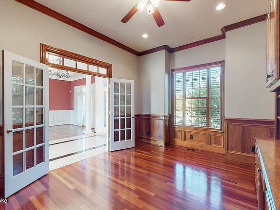 Welcome to this stunning, walk-out ranch style home on 2 acres, next to Nevel Meade golf course. This property has it all! The wrap-around driveway leads into a large foyer with marble floors & an open floor plan. The custom chef's kitchen has maple cabinets with granite countertops, industrial sized GE Monogram refrigerator & freezer, and an extra-large gas cooktop. A large family room with coffered ceilings is situated right off the kitchen, making it the perfect spot to gather. Enjoy your privacy in the massive primary suite, which includes a sitting area with French doors leading out to a large patio. The primary bathroom boasts dual vanities, a giant shower with multiple showerheads, a large soaking tub with jets, and a huge walk-in closet. (cont'd) Each additional bedroom on the main floor has its own private bathroom, & an upstairs guest suite includes another bedroom & full bath. The basement is perfectly suited for large gatherings with a custom bar & granite countertops. Enjoy movies in the huge media room with surround sound and wiring for a projector. A large workshop makes a great space for hobbies or crafts. The concrete back patio is perfect for entertaining with a beautiful private view. There is also a secluded screened-in porch that makes the ideal spot to enjoy peace & quiet. This home has a full backup gas generator system in case of any power loss. Don't miss this opportunity!