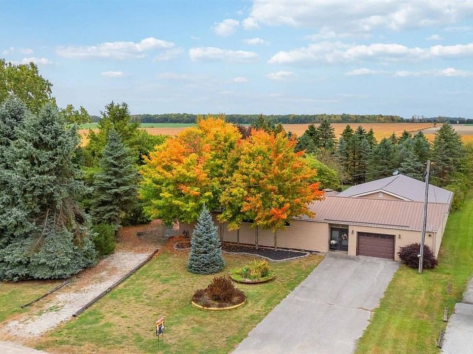 Discover the perfect blend of country charm and modern comfort just minutes from town! This impressive 2,000 sq. ft. bungalow sits on a beautiful 1-acre property — only 5 minutes west of Petrolia and a short 20-minute drive to Sarnia. Enjoy peace, privacy, and open space without giving up the convenience of nearby amenities. Surrounded by lush gardens, mature trees, and a serene backyard retreat, this home welcomes you with its bright, open-concept layout featuring a spacious kitchen with island, open dining and living areas, and a stunning natural fieldstone gas fireplace as the centrepiece. The 4-season sunroom is the perfect place to unwind and take in the beauty of your surroundings. Designed for easy living, this at-grade bungalow means no stairs — just comfortable, accessible space throughout. The primary bedroom offers a full wall of closets, with two additional large bedrooms, a 4-piece bath, and main floor laundry for added convenience. For the hobbyist or car lover, the garage space is a dream come true — featuring a 80x30 attached drive shed, 30x22 attached garage, and a 11x20 detached garage. Updates include metal roof and windows (2000), new furnace and air (2025), and a complete home update in 2000. If you’ve been craving space, tranquility, and fresh country air, this property delivers it all — rural living at its finest!