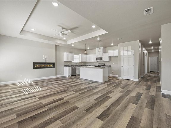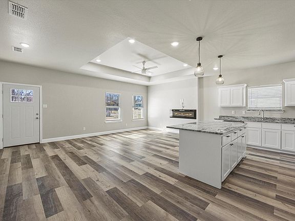 New construction abundant with modern touches such as decorative lighting, electric fireplace in the living room, tray ceilings in the living room and master BR. Open concept living with luxury vinyl flooring throughout the main area providing a modern look with low maintenance. The spacious kitchen features beautiful custom cabinetry, a large kitchen island, high-grade granite countertops. Master bedroom has high tray ceilings, walk-in closet, ensuite bathroom with double vanities and a large tiled shower. Covered front porch and a large backyard with a covered patio for cooking out or relaxing. Easy access to I-30, shopping, dining. This house offers it all!