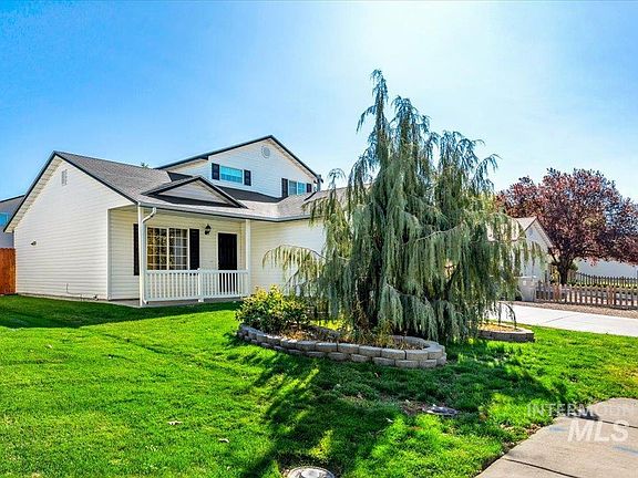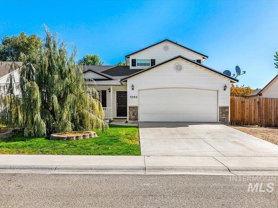 Welcome to this wonderful 3 bedroom 2 bathroom home located on a cul-de-sac. Enjoy the nicely landscaped front yard with planters from the covered front porch. Upon entry hard surfaced flooring great you and carry throughout main level. Freshly painted interior. Vaulted ceiling in living room and adjoining kitchen provides a great space for entertaining. Kitchen features stainless steel dishwasher and range. Desirable floor plan with 2 Main level bedrooms and a bathroom which has been updated with new vanity, tile flooring, and lighting fixture. Upstairs is a spacious primary suite with a generous sized walk-in closet. East facing rear yard boasts an expansive patio, a fantastic firepit area with plenty of room for seating, and an attractive storage shed adjoining the RV parking area on side of home.A/C unit and furnace were replaced within the year, water heater in 2018.