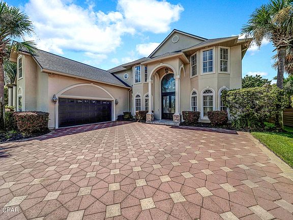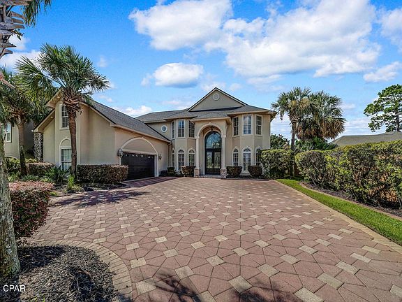 PRICE REDUCED!!!!! COME SEE THIS ONE TODAY! Calling all PICKLEBALLERS! This well appointed, MUST SEE home is just what you have been waiting for! WELCOME HOME to this 4 bedroom, 3.5 bath custom home built for entertaining. Located in one of Panama City's most prestigious gated communities, this Bay Point beauty HAS IT ALL. From the moment you walk in you feel right at home with the open floor plan, great room with soaring 20+ ft. ceilings, and wall of windows that allows the natural light fill your space. Once inside, your attention is drawn to the beautifully renovated chef's kitchen with quartz backsplash that extends to the ceiling, 48'' gas range with double oven, oversized waterfall island with counter height bar seating, and dry bar area with nugget ice maker and wine fridge. In addition, this first floor level offers the master bedroom and ensuite with his and her walk in closets, a home office with built in cabinets, desk, and shelving, a beautiful sitting area with bay windows that could also be used as a dining room. Also downstairs is a half bath for guests, laundry room, and a 2.5 car oversized garage. Walk upstairs to find 3 additional bedrooms, 2 bathrooms, loft, wet bar, bonus play room, and inside attic storage room for convenient access. Situated on one of the largest lots in the neighborhood, this backyard is a dream. Invite all your friends and neighbors over to grill in the outdoor kitchen, swim or play in the heated, saltwater, sport design pool and spa, relax by the natural gas fire pit with your feet up sipping a cocktail, or lace up your sneakers and hit the lighted sports court for a friendly game of PICKLEBALL, BASKETBALL, or VOLLEYBALL. The possibilities are endless. You can have ALL of this in your very own backyard and STILL have room to let the children or pets run wild. Why would you ever need to leave? Call today and find yourself HOME.