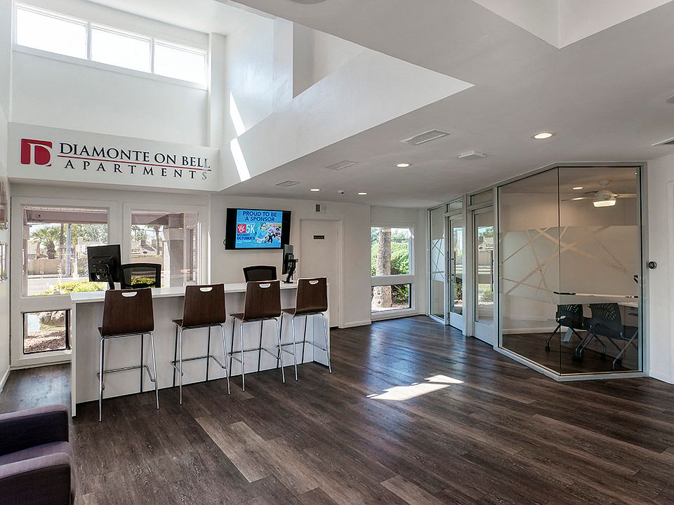 Experience the lifestyle you deserve at Diamonte on Bell. Surrounded by towering trees, this diamond in the desert offers tasteful homes and exceptional amenities. Our spacious apartments feature fully-equipped kitchens, breakfast bars and walk-in closets. Outside, the two expansive pools and patios are ideal for unwinding. The picnic area and playground are perfect for family fun. For your convenience, we have reserved, covered parking and a controlled access gate.