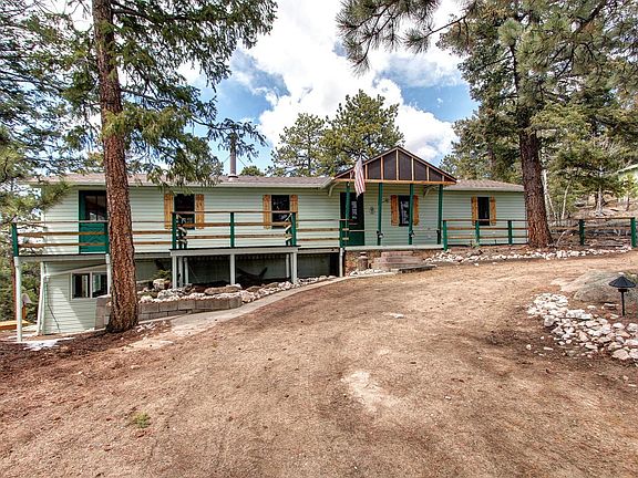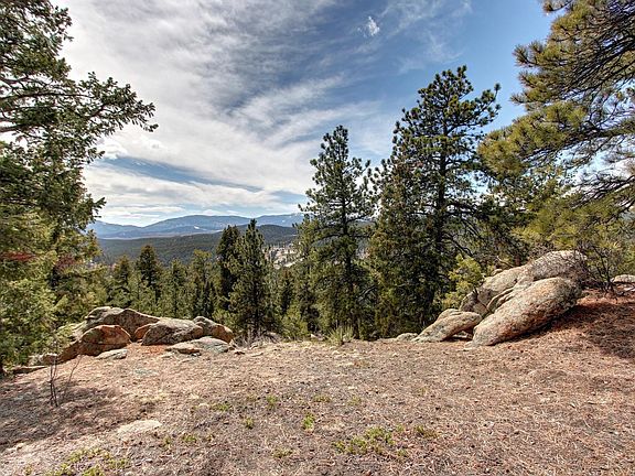The "Top of the Rock" is the place to be! You will be amazed by the breathe taking views of Pikes Peak and Mount Evans. This ranch with walk-out basement has a welcoming family room with a wood burning stove. An office/den flooded with light and eye catching views. The updated kitchen has stainless appliances and knotty alder soft close drawers. The gorgeous master remodel in the walk-out opens to the private hot tub deck, then come back in to the cozy master with pellet stove. New carpet throughout. The 1.55 acres is great for exploring and climbing on the many rock outcroppings on the property. Conveniently located to Staunton State Park for hiking and biking.