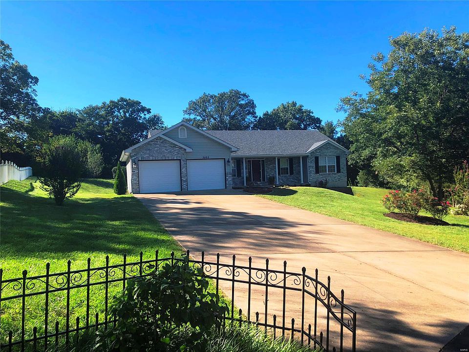 Beautiful ranch ready to call home. The outdoor enthusiast will love the gardens and the perennials throughout the landscaping. Fruit trees, pecan tree, grape vines, black walnut trees and a strawberry patch to name a few, grace this spanning yard oasis. The rear patio boasts a Pergola ready for that evening glass of wine while watching the sun set. The full walkout basement has an area to add a fourth bedroom with a legal window. The family room is bright and easily accessible from the side yard and patio or the main level. On the main level the large open great room and formal dining area includes a gas log fireplace and towering cathedral ceilings. This home has been freshly painted throughout and new carpet installed, make this home your own as you move right in. The Kitchen has 42" cabinets along with a center island and breakfast bar and a main floor laundry room right off the garage.