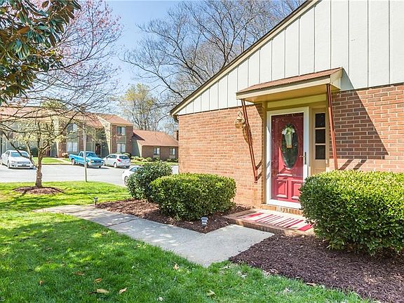 Beautiful one level end unit townhome with privacy entrance. Many recent updates including a new fence, ceramic flooring planks, hardwood floors, ceramic tile and carpet. New water heater, HVAC system, sliding door w/ built-in mini blinds. Stainless steel appliances including the refrigerator, newer washer/dryer and flat screen TV in the second bedroom convey. Wood burning fireplace and private fenced in patio. Very close to shopping centers, convenience stores and minutes to downtown Greensboro. Schedule your showing today as this won't last!