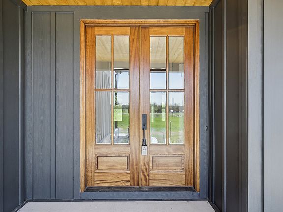 Welcome home to this stunning new construction by Simmons, perfectly nestled on 5.16 private acres. Blending modern luxury with timeless charm, this custom-built residence features striking cedar posts and shutters, custom doors, and a thoughtful open-concept layout designed for both comfort and style. Step inside to a breathtaking two-story great room with hardwood floors, a custom stone gas fireplace, and built-in shelving. The gourmet kitchen is a dream with a large island with seating, soft-close cabinetry, high-end appliances, and a spacious walk-in pantry. Enjoy meals in the sunny breakfast room surrounded by windows or entertain in the elegant formal dining room with designer trim walls. The luxurious primary suite on the main level offers a walk-in closet with custom built-ins, double vanity, freestanding soaking tub, and a sleek, tiled shower. A stylish powder room, dedicated laundry with sink and storage, and a mudroom with cubbies enhance main-floor functionality. Upstairs, you'll find three generously sized bedrooms, two full baths, and a massive bonus room over the 3-car garage- perfect for a playroom, gym, or media space. Relax on the covered front or back porch and enjoy the peaceful surroundings. With fiber internet available via AT&T and potential savings with a preferred lender, this home combines the tranquility of country living with luxury and convenience. Your dream home awaits- schedule your tour today!