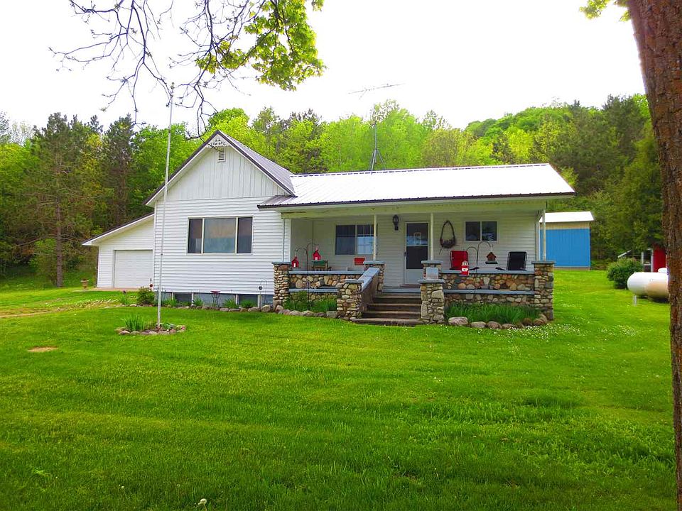 Nice farmhouse just outside of the Village of Central Lake has all the character you would expect with all the upgrades you would need. Adorable covered field-stone porch on the front of the home is the perfect place sit and visit with friends and family. Detached two+ car garage and an additional 16' x 40' pole building nestled on 10 acres.