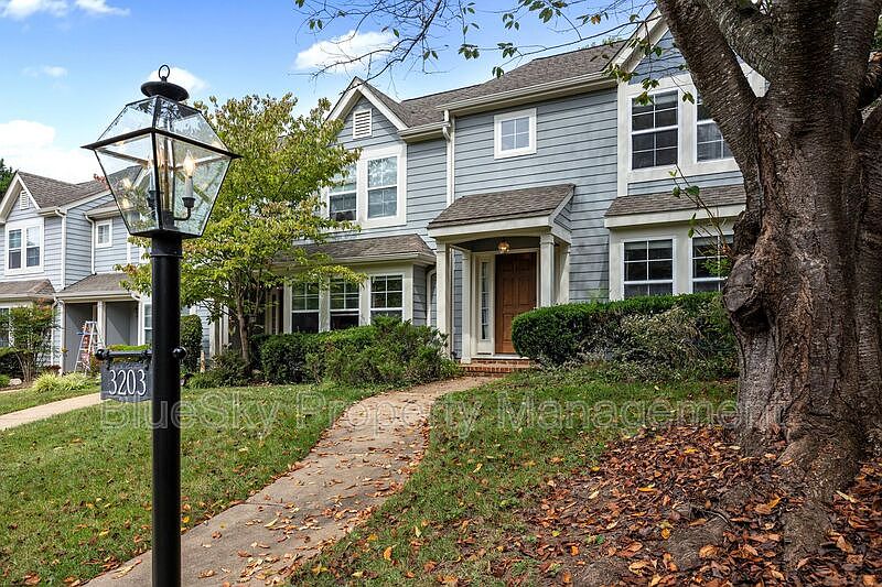 This superior townhouse, situated in an excellent location, combines comfort and style with its freshly painted interiors. Featuring three bedrooms and 2.5 baths, the home boasts cathedral ceilings in the upstairs bedrooms, filling the space with natural light. The large eat-in kitchen is perfect for casual dining and is complemented by an attached sitting area that can be used as a home office or play area. The separate dining and living rooms offer additional space for entertaining or relaxation. Outside, the private and quiet rear patio provides a peaceful retreat. This townhouse offers a wonderful blend of modern amenities and serene living. Schedule a tour today! All BlueSky Property Management residents are enrolled in the Resident Benefits Package (RBP) for $45.95/month which includes liability insurance, credit building to help boost the resident's credit score with timely rent payments, up to $1M Identity Theft Protection, HVAC air filter delivery (for applicable properties), move-in concierge service making utility connection and home service setup a breeze during your move-in, our best-in-class resident rewards program, and much more! More details upon application. Amenities: 2 swimming pools, tennis courts, fitness center, lawn care, walking trails, community clubhouse