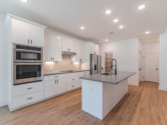 New single-story construction on an oversized corner lot, with beautiful curb appeal and mature trees rarely found in new homes. This 3-bedroom + studio, 2.5-bath home offers a bright, open floor plan with 9-foot ceilings, a soaring 16-foot ceiling in the living area, and a taller-than-standard ceiling in the primary suite. Luxury vinyl plank flooring runs throughout, and a sleek linear smart fireplace adds a modern touch. The chef's kitchen impresses with Samsung appliances, under-cabinet lighting, custom wood shelving, and an oversized pantry. Bedroom closets include clever 3rd-level storage. Built in collaboration with respected Houston developer Urbatechture, it also offers more brick, windstorm-prepared structure, and a full-yard sprinkler. The fenced backyard with its well-proportioned covered patio invites quiet evenings and lively gatherings. As Walden approaches build-out, this rare home offers the perfect mix of quality, style, and long-term value.